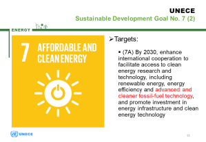 Mr. Drabik from the UNECE in Geneva noted that fossil fuels will remain a major component of the future global energy mix, even under the most optimistic 2°C scenario for GHG emission reductions. He stressed that all seventeen Sustainable Development Goals (SDGs) are equal, meaning that SDG 7 on affordable and clean energy or SDG 13 on climate action are neither more nor less important than, for example, those on poverty (SDG 1) or hunger (SDG 2). They should all be considered together in an integrated approach, he said. At the same time, Mr. Drabik pointed to the fact that all SDGs depend on energy, as none of them can be attained without reliable access to it.