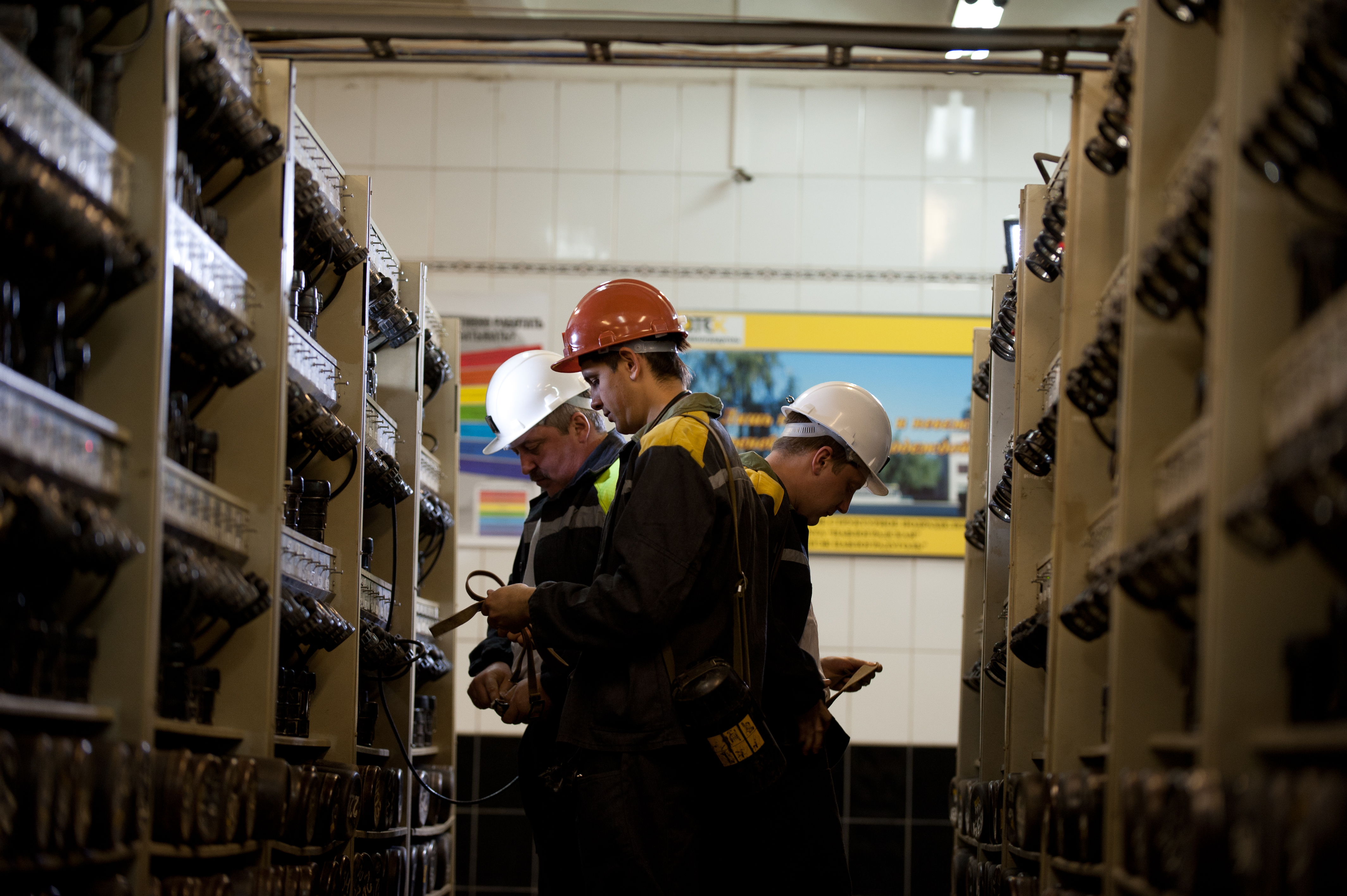 Predko GLEB: Miners adjusting equipment at coal mine Stepnaya (Ukraine)