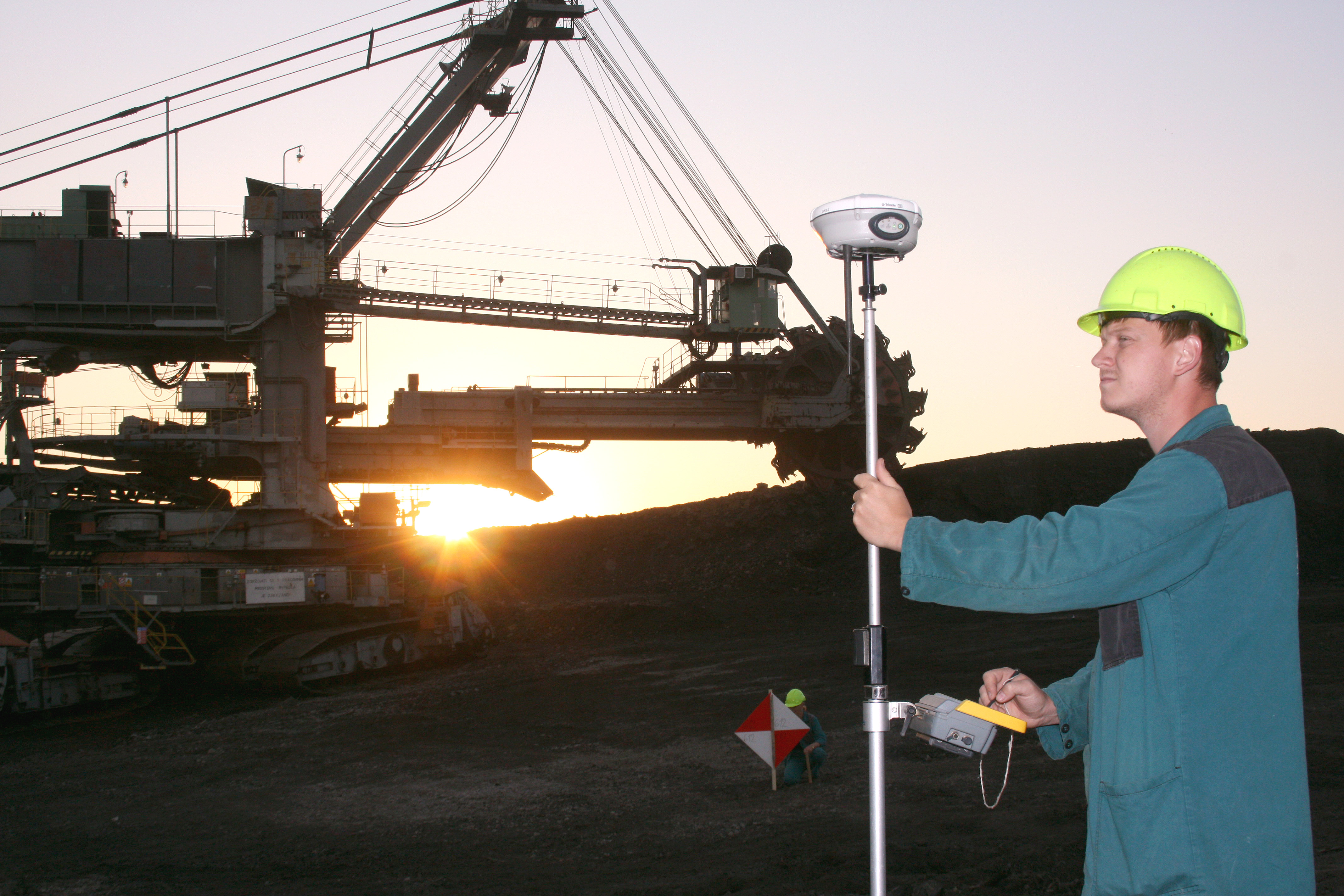 The Czech Coal Group uses GPS technology for mining and geological surveys. Josef Blin, mine surveyor, is seen here making measurements using GPS to plan future extraction using a KU 300 excavator.