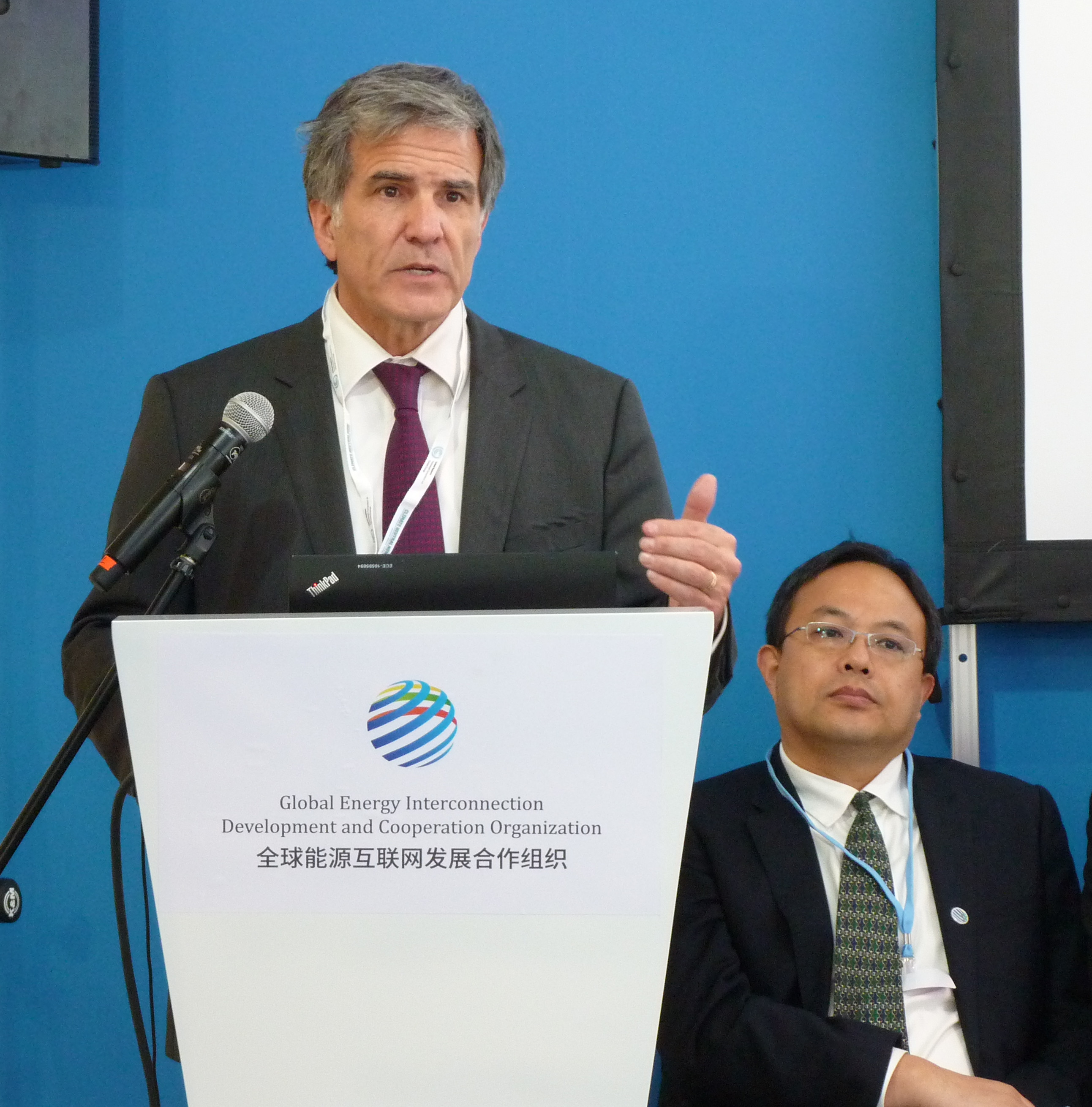 Scott Foster, Director – Sustainable Energy Division, UNECE and Dr. Lin Hongyu, Director of Cooperation Bureau, Global Energy Interconnection Development and Cooperation Organization (GEIDCO) speak on the “deep transformation” of the energy system through electricity